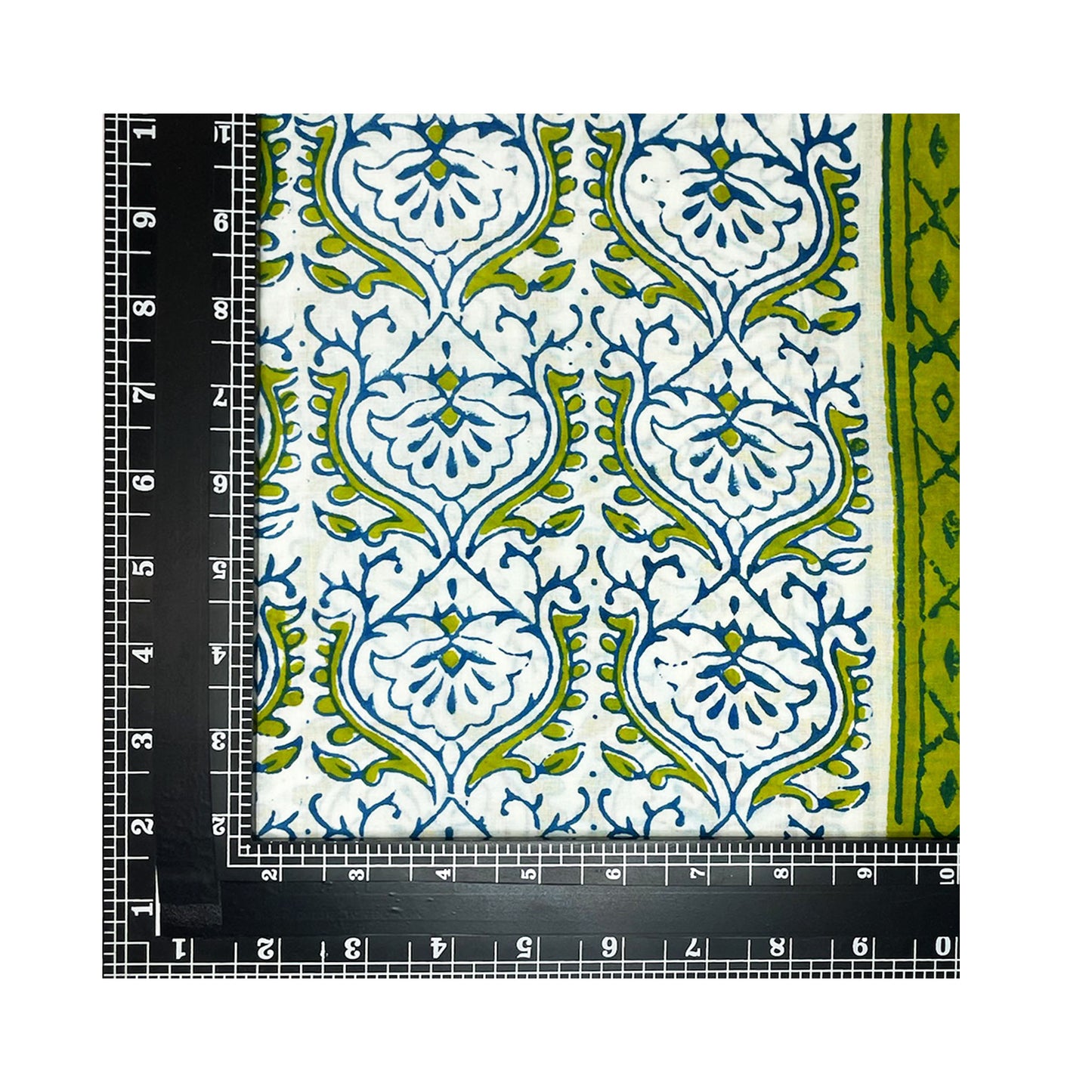 White Hand-Block Fabric with LIGHT OLIVE GREEN & INDIGO shade.